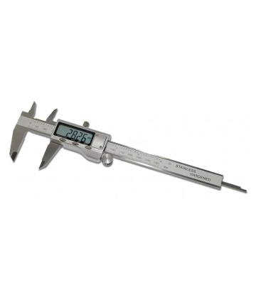 Este calibrador cuenta con una construcción totalmente metálica y una gran pantalla de 9.5 mm de altura para facilitar la lectura. Imprescindible para cualquier servicio técnico. Permite medir de forma fácil y precisa piezas, espaciado entre cuerdas, diámetros, grosor, etc. Control digital convierte pulgadas a mm.